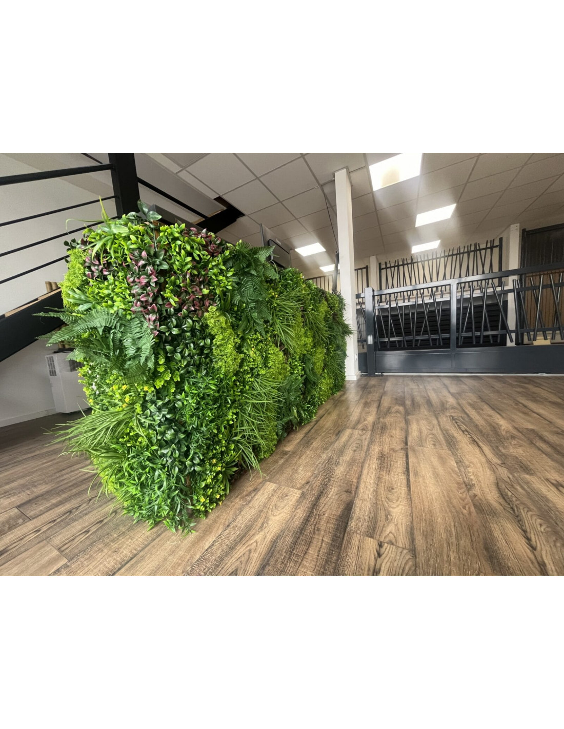 Avec un feuillage synthétique dense et très occultant, le mur végétal artificiel préserve efficacement votre espace privé.