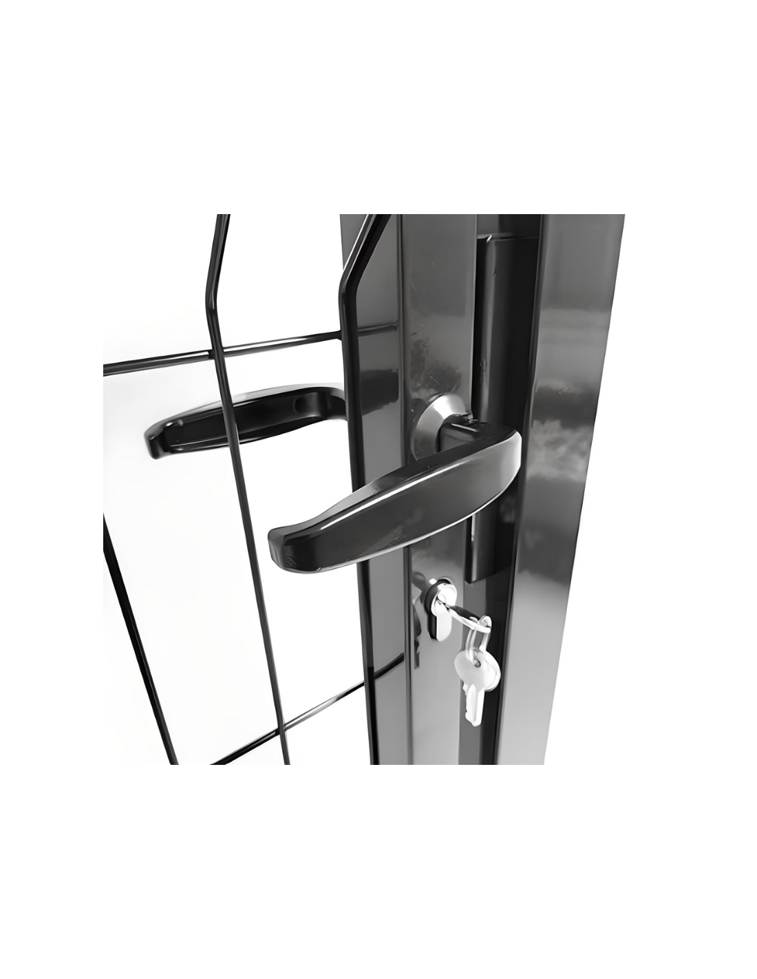 Notre portillon grillagé est livré avec 2 poteaux, serrure et gâche.