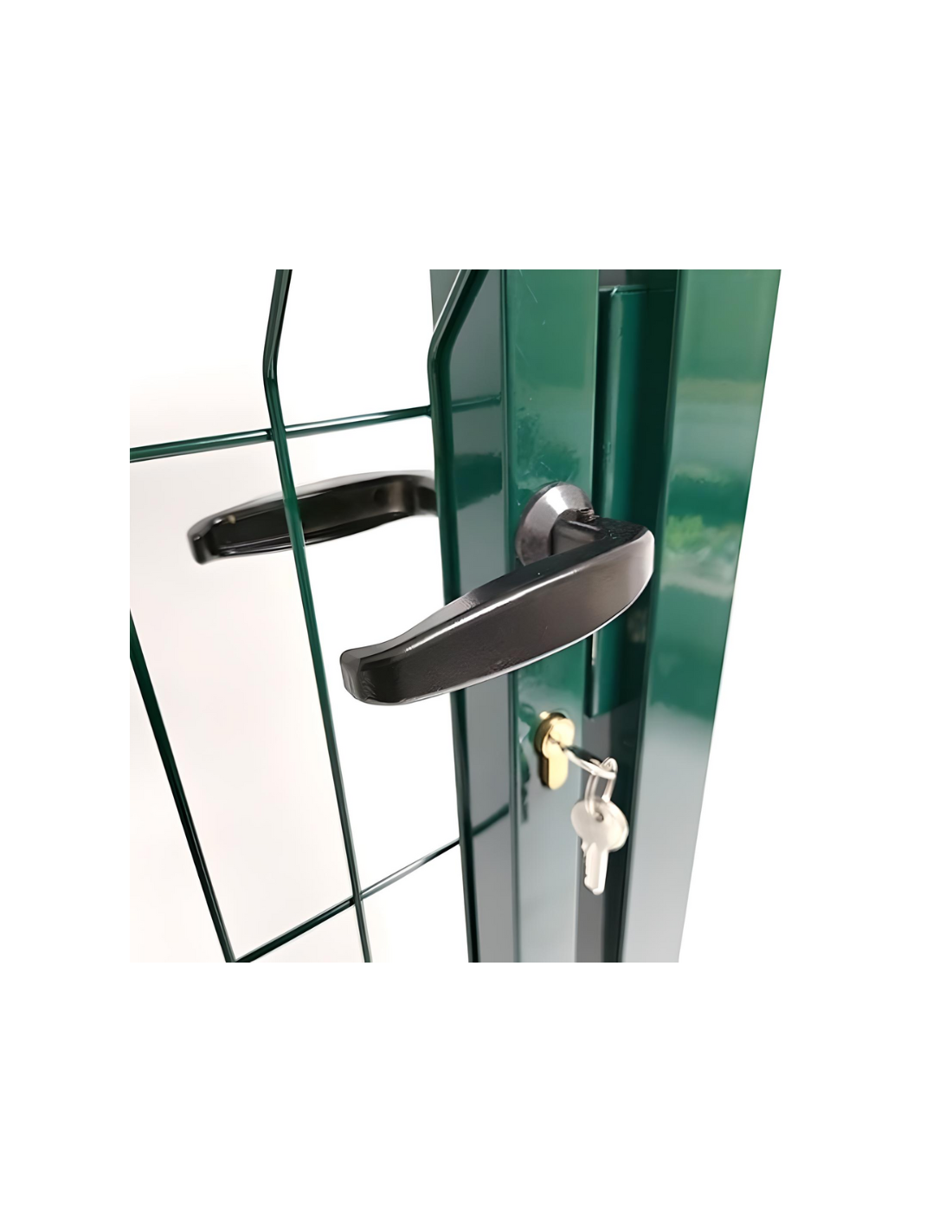 Notre portillon grillagé est livré avec 2 poteaux, serrure et gâche.