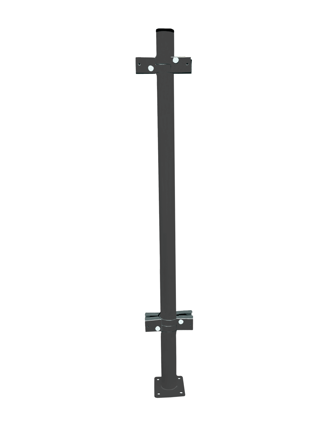 Poteau avec platine soudée, compatible avec barreaudage aléatoire, traversant ou non traversant.