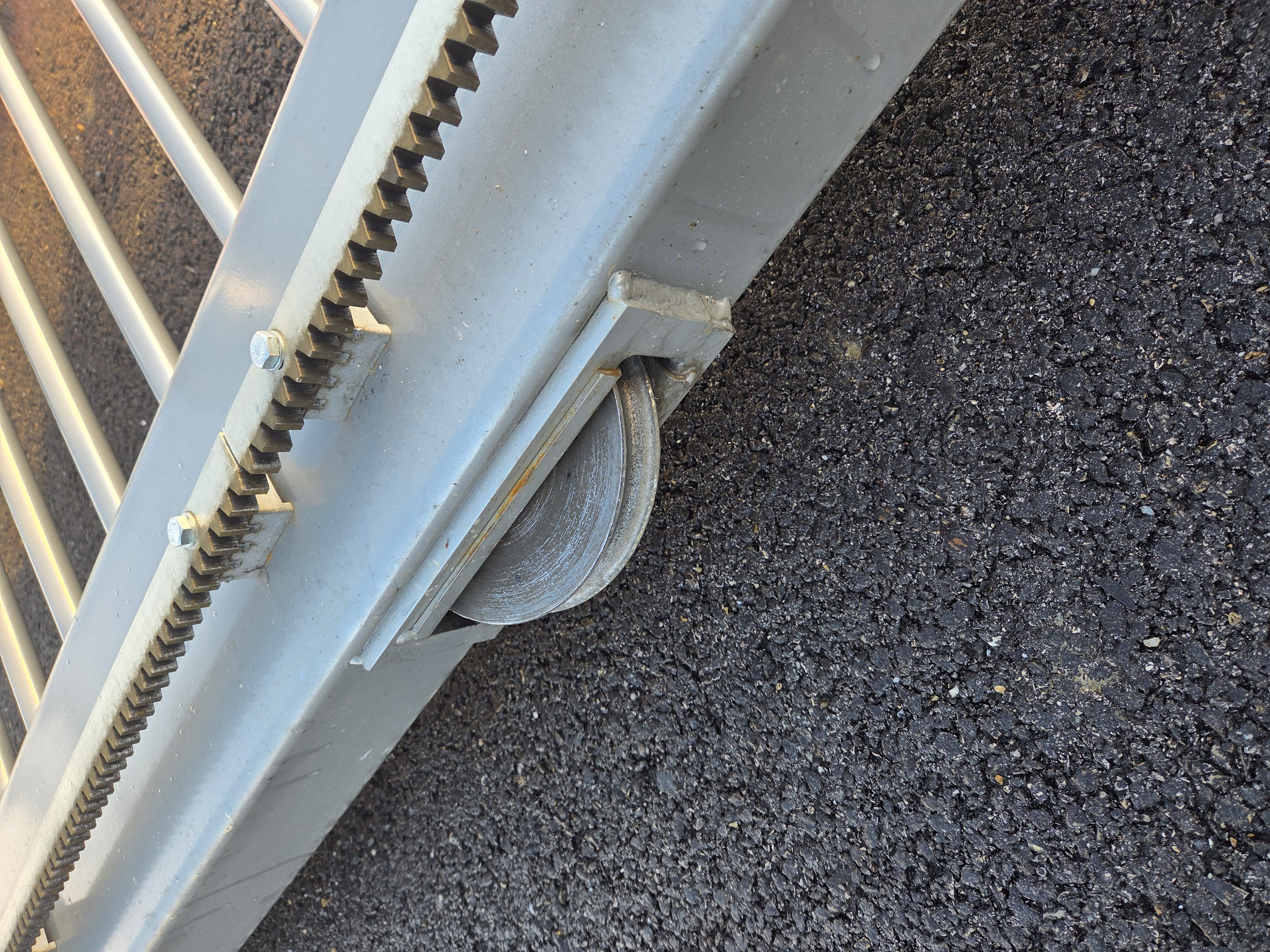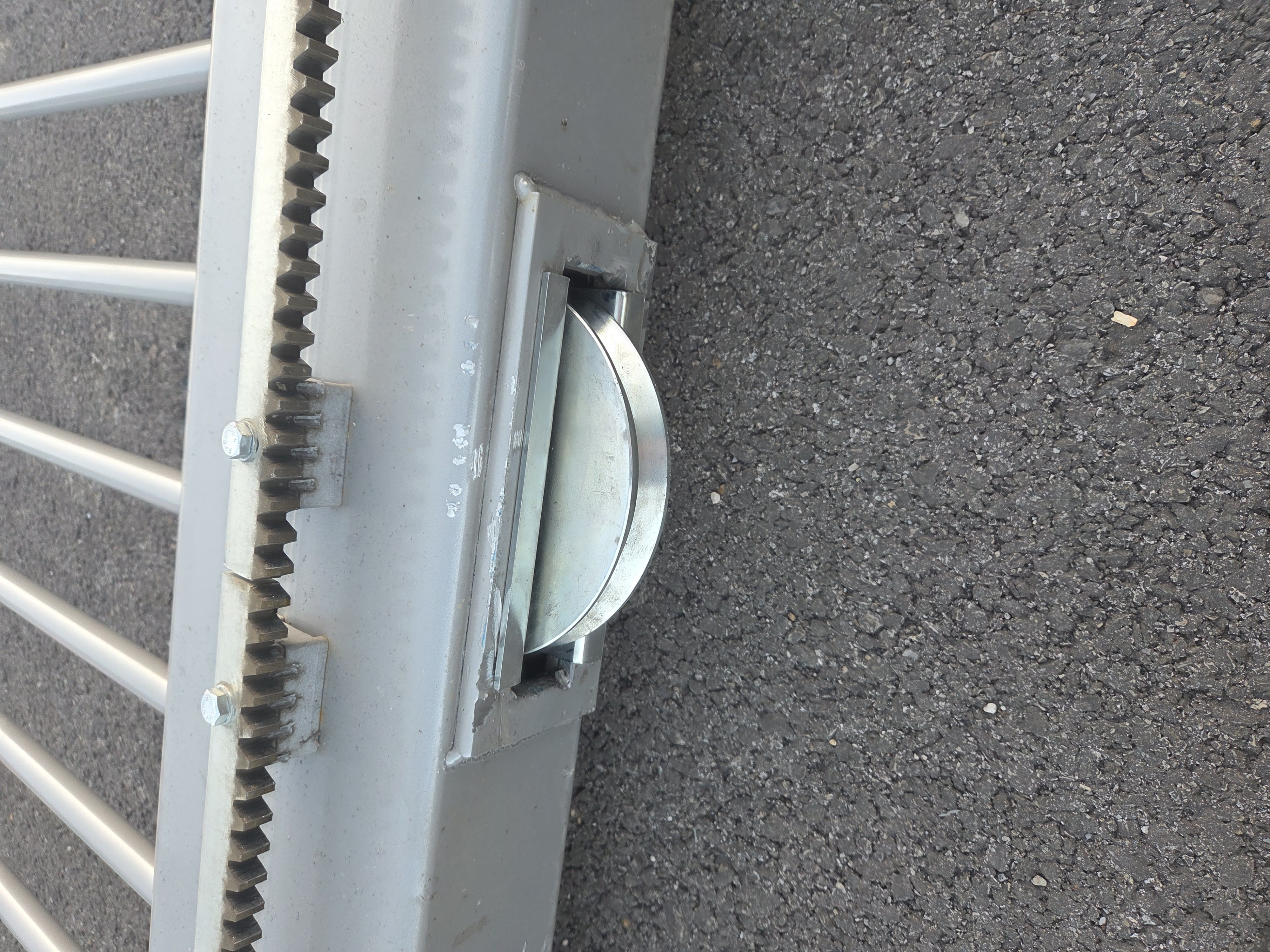 Une fois les nouvelles roulettes installées, le portail a été remis en place, suivi de plusieurs essais de fonctionnement.